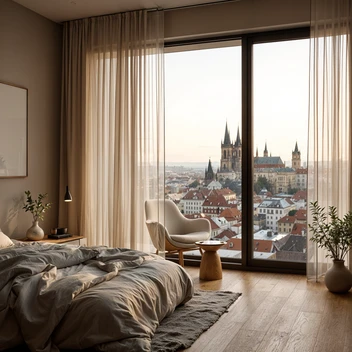 Zrenovovaný pokoj, který kombinuje moderní design a komfort s důrazem na moderní technologie.